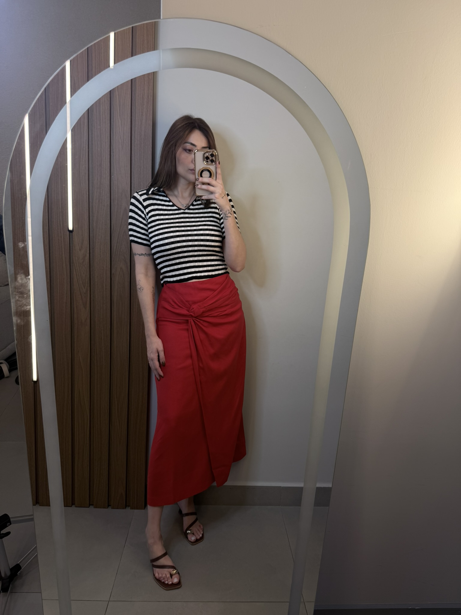 Versátil, combina perfeitamente com jeans, alfaiataria, shorts ou saias, criando looks que vão do casual chic ao despojado com facilidade.