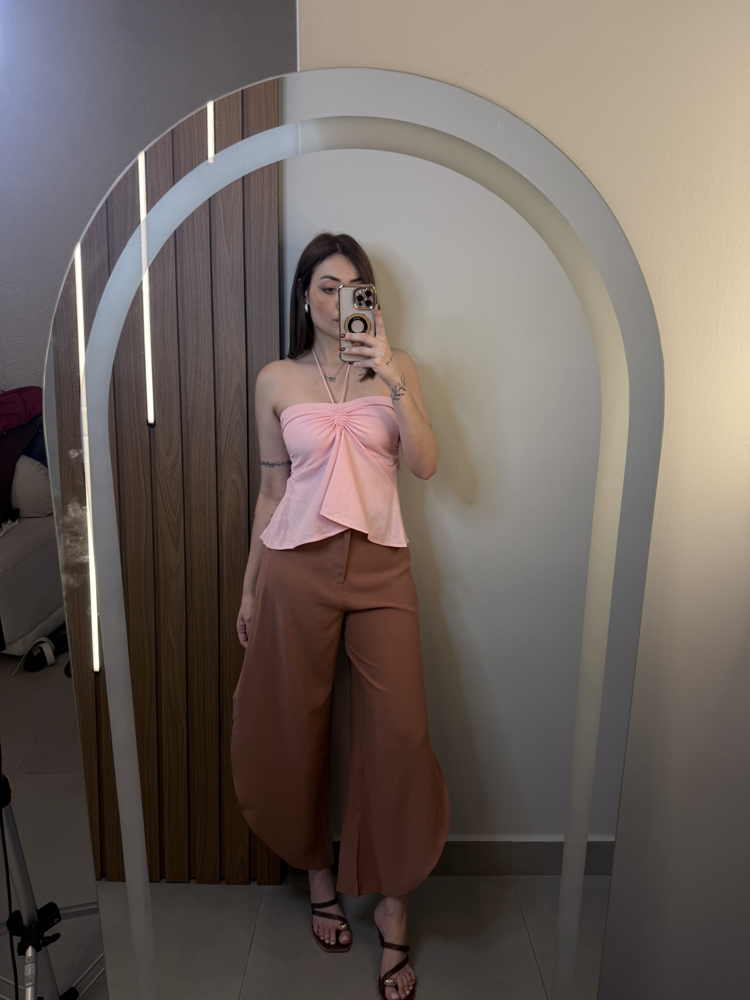 O design frente única valoriza o colo e os ombros, trazendo um ar delicado e ao mesmo tempo marcante. Versátil, combina facilmente com jeans, saias, alfaiataria ou peças de linho para um visual completo e atemporal.